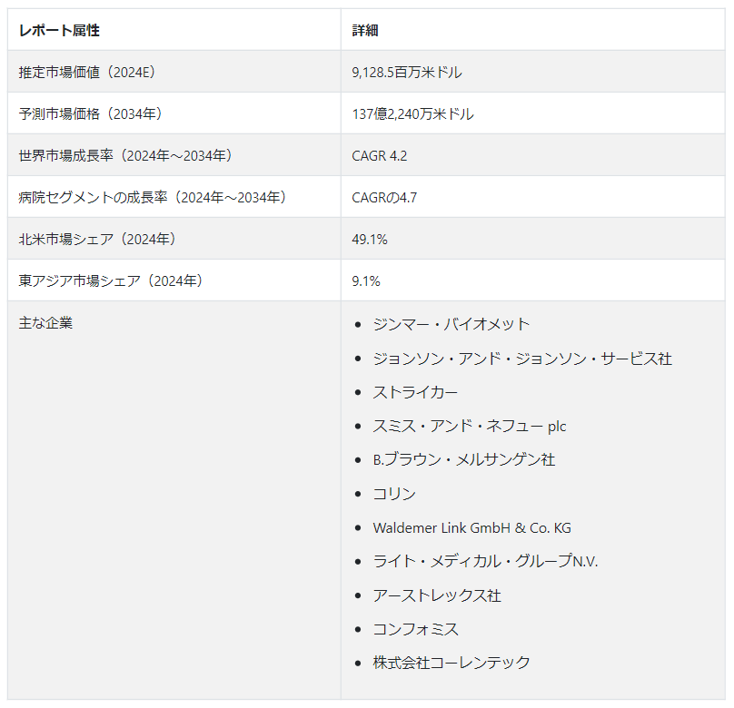 人工股関節置換術の北米市場は、2034年まで年平均成長率4.3%で成長すると予測されています。