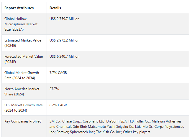 中空微小球の世界市場の歴史的分析(2019年~2023年)と将来(2024年~2034年)の経路分析
