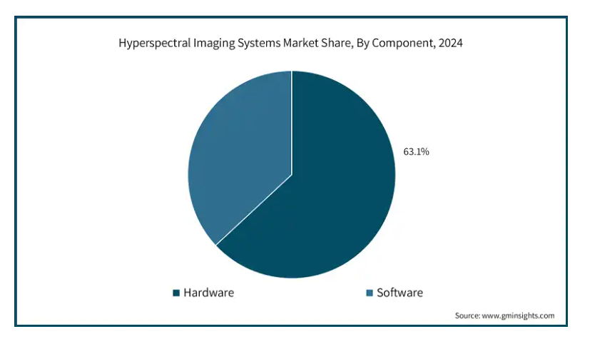 ハイパースペクトルイメージングシステム市場のハードウェアセグメントは、ハイパースペクトルカメラ、センサー、光源、データ収集システム、処理ユニットなどの必須コンポーネントで構成されています。高度なセンサーを備えたハイパースペクトルカメラは、数百の波長にわたって高解像度のスペクトル画像をキャプチャし、正確な物質同定と分析を可能にします。