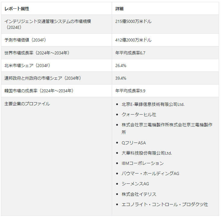2034年のインテリジェント交通管理システムの需要見通しは?
