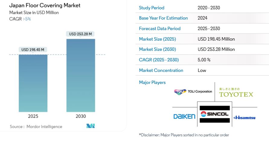 TOLI Corporation、Sincol Co Ltd、TOYOTEX、DAIKEN CORPORATION、Hisamatsu Seito Co Ltdが日本の床材市場で事業展開する主要企業です。
