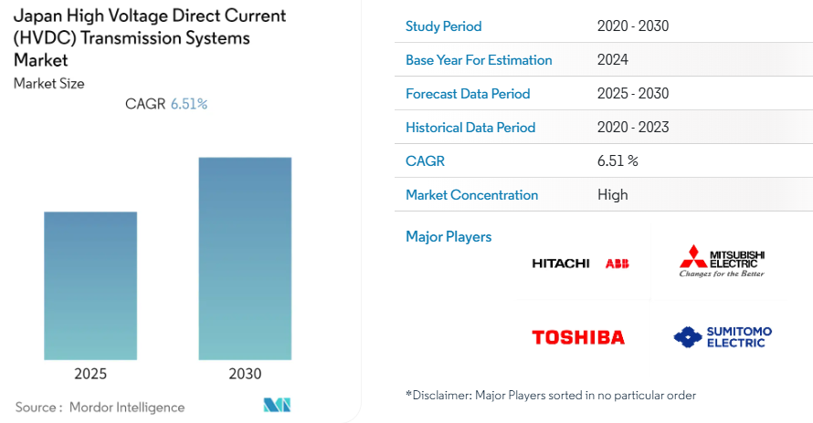– 日本のHVDC送電システム市場は、予測期間中に年平均成長率(CAGR)6.51%で成長すると予測されています。