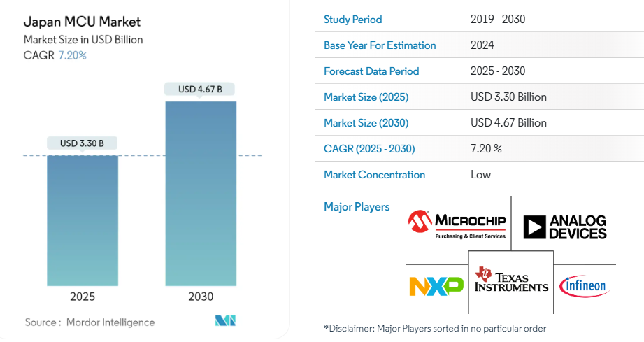 マイクロコントローラ(MCU)の日本市場(2025年~2030年)