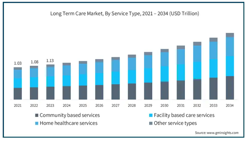 政府の政策と規制:これらはLTC市場の最も重要な推進要因です。政府は、介護施設におけるサービスの質、安全性、可用性に関する介護基準の確立に積極的な役割を果たしています。このような政策は、公的介護、在宅介護、地域サービスを発展させるための基盤となります。