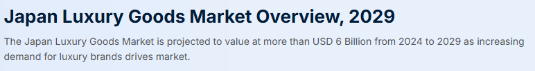Bonafide Research社の調査レポート「日本の高級品市場の概要、2029年」によると、日本の高級品市場は2024年から2029年にかけて60億米ドル以上の規模になると予測されています。日本特有のいくつかの要因が高級品市場の急成長に寄与しています。まず、日本が長年培ってきた職人文化と細部へのこだわりが、消費者の間に高級品への深い理解を育んできました。この卓越した伝統は、洗練された美意識と相まって、日本を高級品の生産と消費の拠点として位置づけています。さらに、日本の経済的繁栄と高い生活水準は、高級品を購入する購買力を持つかなりの富裕層を生み出しました。さらに、原宿のストリート・スタイルや前衛的なデザイナー・ブランドなど、日本独自のファッション・サブカルチャーは国際的な注目を集め、世界のファッション・インフルエンサーとしての日本の地位を高めてきました。さらに、高齢化が進み、リタイア後の富裕層が増加していることから、レジャーや自己満足の手段として高級品を好む層が形成されています。さらに、テクノロジーとイノベーションに魅了される日本は、ハイテクに精通した消費者の嗜好に応えるため、デジタル体験やハイテク要素を高級小売スペースに取り入れるようになりました。最後に、日本の主要な観光地としての地位は、特に中国や韓国といった近隣諸国からの富裕層旅行者のために、高級ショッピング体験やデザイナーブランドへの需要を煽り、日本の高級品市場をさらに押し上げています。全体として、文化的遺産、経済的要因、ファッションの影響力、人口動向、技術革新、観光が組み合わさって、日本の高級品市場の急増に寄与しています。