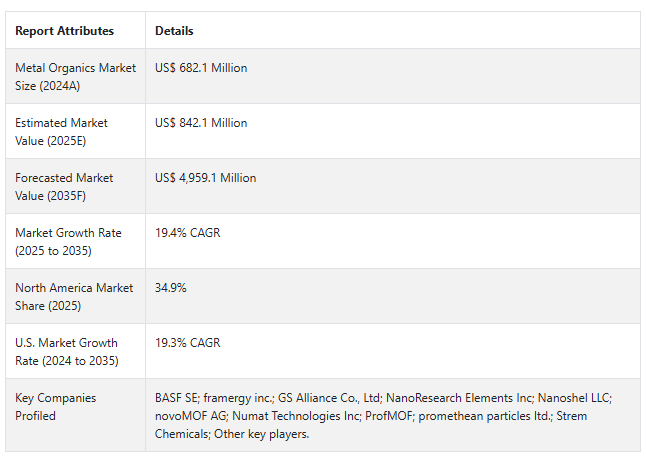 市場調査および競合情報を提供するFact.MRによると、前述の事実を背景に、世界の有機金属市場は2024年から2035年までの予測期間中に19.4%のcagrで成長すると予測されています。