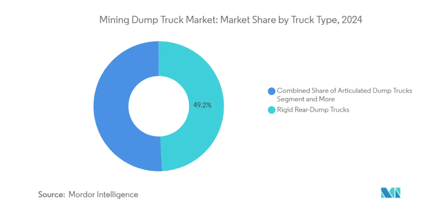精密採掘ソフトウェアは、トラックの積載情報を製錬所コントローラーに提供し、鉱石ブレンド目標値を狭い範囲内に維持することで、回収率を3~5%向上させます。このシステムを自律搬送と組み合わせることで、配車エンジンは製錬所の制約に基づいてトラックの経路を決定し、ボトルネックを解消し、濃縮装置の稼働時間を最大化します。こうした統合による利点は、自律型フリートが達成可能な上限を引き上げるとともに、機器サプライヤーに分析サブスクリプション販売の足掛かりを提供し、鉱山用ダンプトラック市場内に継続的な収益源を創出します。