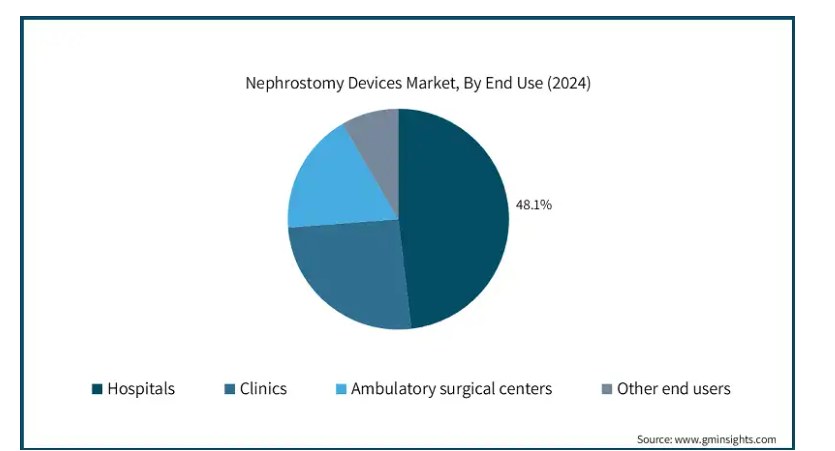 さらに、多くの地域で病院ベースの腎瘻治療に対する償還政策が利用可能であることが、これらの装置の採用を後押ししています。重要な泌尿器学的介入には病院での設定が好まれるため、市場での優位性は継続します。
