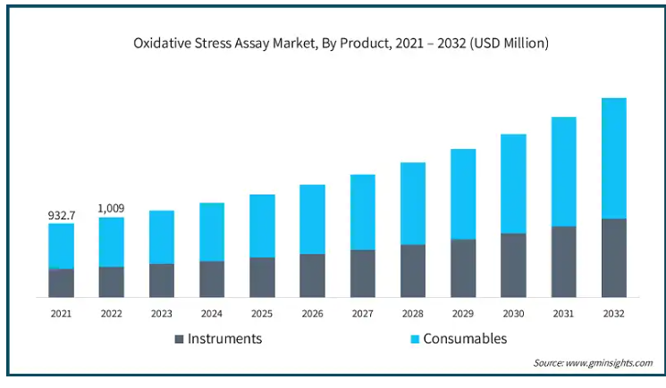 臨床段階に達した開発中のバイオ医薬品では、酸化ストレスは別個のものであり、重要なアッセイは、医薬品の有効性と安全性を評価する際の一般的な臨床エンドポイントです。これらのアッセイにより、患者または外来患者における酸化ストレスのレベルを、治療に関連して異なる時期に評価することが可能になり、規制当局への申請において重要な情報となるため、市場が拡大しています。