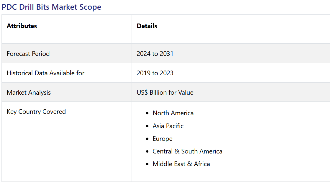 PDC Drill Bits Market by Product (Matrix body, Steel Body), End use (On Shore, Off Shore), and Region for 2024 to 2031