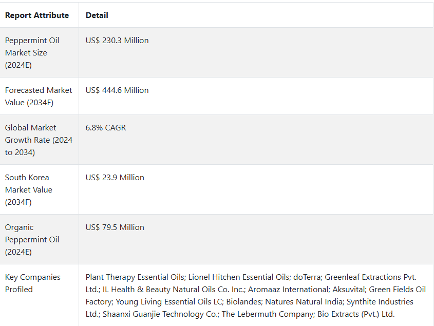 Fact.MRは、最近更新した市場レポートの中で、世界中に位置するペパーミントオイルの主要生産者の価格ポイント、売上成長、生産能力、推測される技術拡張に関する詳細な情報を提供しています。