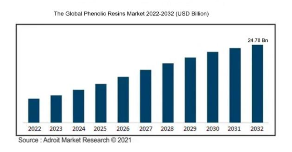 フェノール樹脂の世界市場規模は2032年には247.8億ドルに達し、年平均成長率(CAGR)5.4%で拡大すると予想される。