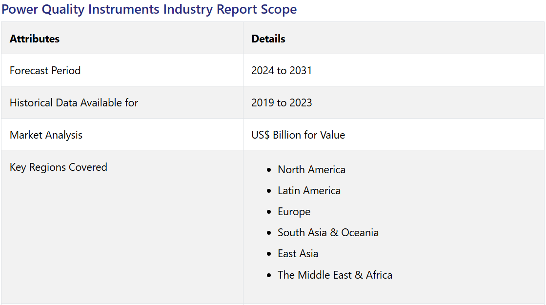 Power Quality Instruments Market by Product Type (Power Quality Meters, Power Quality Analyzers, Voltage Testers), Application (Utility, Industrial, Commercial) and Region for 2024 to 2031