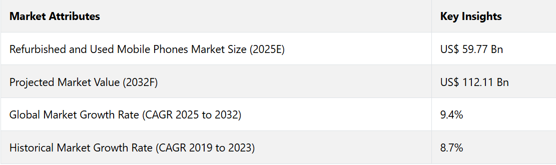 Refurbished and Used Mobile Phones Market by Type (Refurbished Phones, Used Phones), Pricing Range (Low, Mid, Premium), Sales Channel, and Regional Analysis from 2025 to 2032