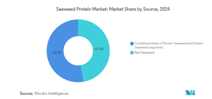 2024年にアジア太平洋地域が占める62.33%の市場シェアは、効率的なタンパク質抽出・加工を可能とする統合的な政府政策と確立された栽培インフラにより、海藻タンパク質市場を牽引しています。2023年に7億6300万米ドルに達した韓国の海藻輸出は、同地域のタンパク質生産能力を実証しており、政府は2027年までに124の輸出先を対象に高タンパク品種に焦点を当てた10億米ドルの目標を設定しています。提案されている東アジア昆布コンソーシアムは、各国間の遺伝的多様性を維持しつつ、最適なタンパク質収量のための栽培手法を標準化することを目指しています。同地域では、高緯度地域への栽培地移転を含む気候適応戦略を実施し、タンパク質生産を保護しています。江蘇省では、タンパク質抽出に特化した耐熱性品種の開発が進められています。
