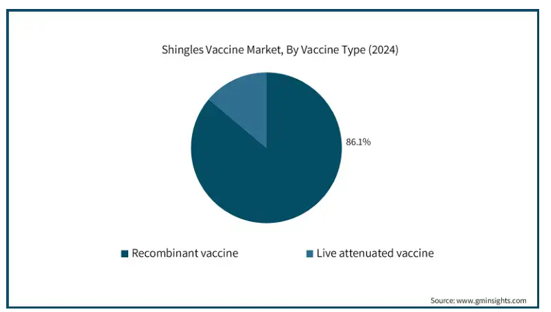 ワクチンの種類別では、帯状疱疹ワクチン市場は組み換えワクチンと弱毒生ワクチンに区分されます。2024年には組換えワクチン分野が市場を支配し、予測期間終了時には113億米ドルに達すると予測されています。