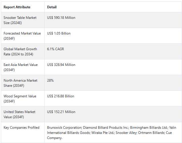 スヌーカーテーブル市場の展望(2024年~2034年)