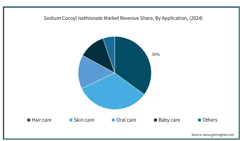 パウダー状セグメントは2024年に1億2450万米ドル以上を占め、2025-2034年のCAGRは5.7%拡大すると予測されています。ココイルイセチオン酸ナトリウム(SCI)の粉末形態は、その利便性、汎用性、様々な製剤での使いやすさから、ココイルイセチオン酸ナトリウム市場で大きな優位性を獲得しています。SCIは、その安定性、長い保存期間、粉末、錠剤、バーなどの乾燥製剤に容易に配合できる能力から、メーカーに好まれています。粉末SCIは、他の成分との混合がスムーズで一貫性があるため、固形クレンザー、シャンプーバー、バス製品に特に人気があります。さらに、肌にやさしく、豊かでクリーミーな泡立ちを実現できるため、敏感肌のスキンケア製品に最適です。また、パウダータイプは軽量で液漏れしにくいため、輸送コストや包装コストを削減でき、環境に優しく持続可能な包装ソリューションとしての魅力も高まります。