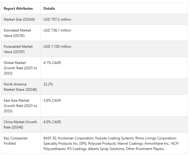 スプレーポリウレアエラストマーの販売分析(2020年~2024年)と市場予測(2025年~2035年)