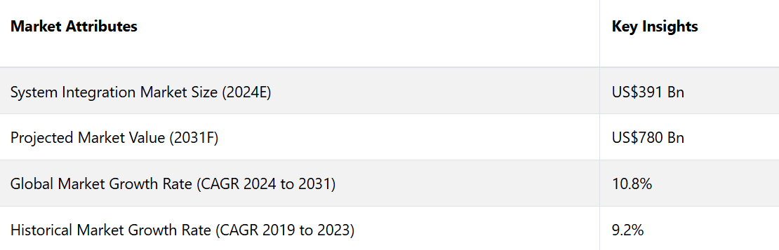System Integration Market by Service (Infrastructure Integration, Application Integration), Enterprise Size (Large Enterprises, Small Enterprises), End Use (IT, Defence, BFSI, Healthcare, Retail), and Region for 2024 to 2031