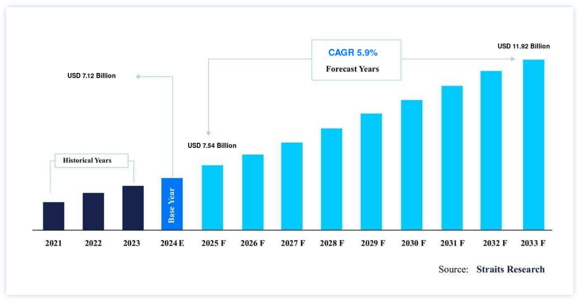 世界の 温度センサーの市場規模は、2024年には71.2億米ドルと評価され、2025年には79.2億米ドルに達すると予測されている。2025年の540億ドルから2033年には119.2億ドルに達し、予測期間中(2025年~2033年)に年平均成長率6.19%で成長する。