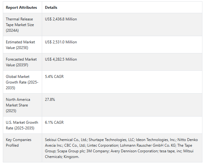 熱剥離テープ市場の過去(2020年~2024年)と将来(2025年~2035年)の経路分析
