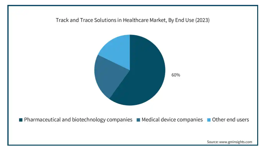 エンドユーザー別に見ると、ヘルスケア分野における追跡・トレース装置市場は、製薬・バイオテクノロジー企業、医療機器企業、その他のエンドユーザーに区分されます。2023年には製薬・バイオテクノロジー企業セグメントが市場を支配し、予測期間終了時には99億米ドルに達すると予測されています。