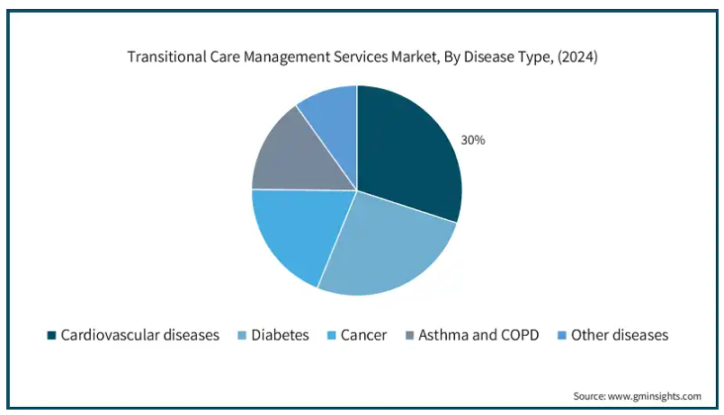 世界人口の高齢化は心血管疾患(CVD)の蔓延に大きく寄与しており、特に高齢者はこれらの疾患に罹患しやすくなっています。構造化されたフォローアップ、投薬管理、生活習慣の改善を通じてこの層をサポートするトランジショナルケアマネジメントサービスがますます求められるようになり、このセグメントの優位性が確固たるものとなっています。