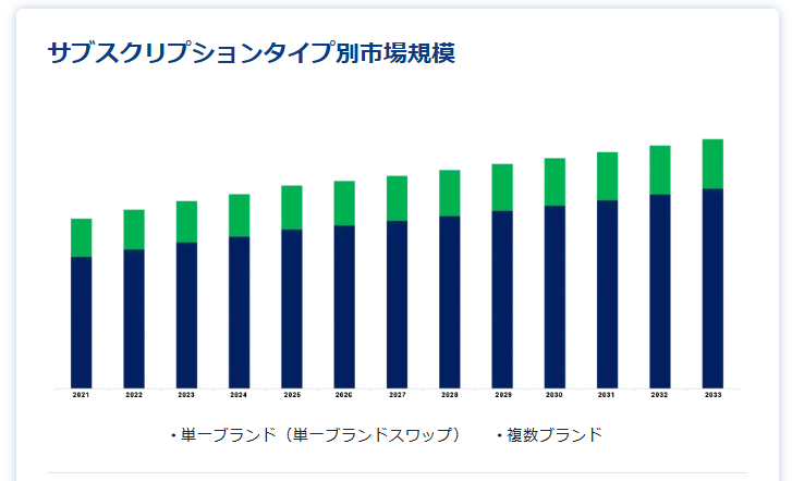 発展途上国における消費者の可処分所得の急増は、市場拡大の重要な要因である。 また、人口拡大や急速な都市化などの要因からも、市場の拡大が見込まれている。 リースよりもサブスクリプションの方が市場の拡大に拍車がかかる。 また、リースと比べてサブスクリプション・サービスは契約期間が長い。
