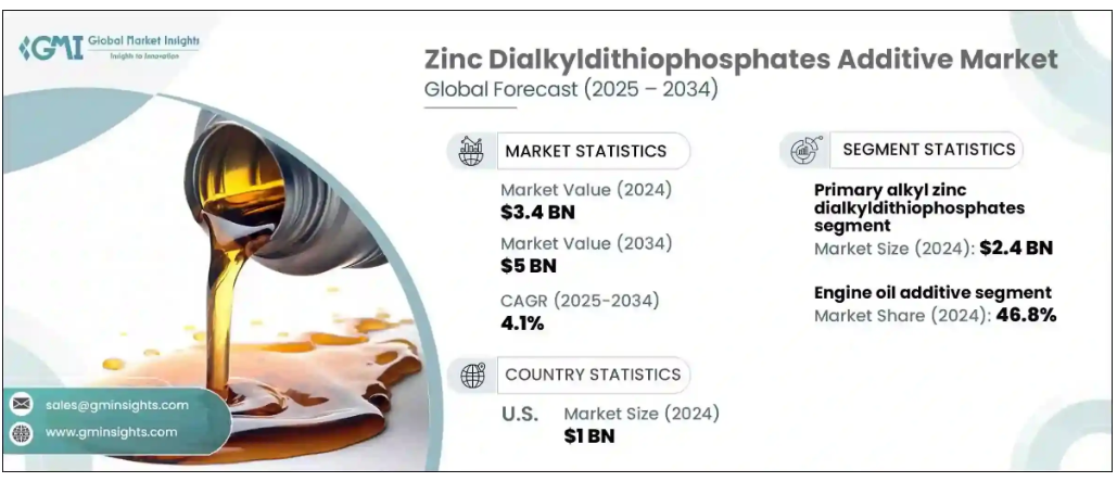 ジアルキルジチオリン酸亜鉛添加剤の世界市場規模は2024年に34億米ドルとなり、2025年から2034年にかけて年平均成長率4.1%以上で成長すると予測されています。