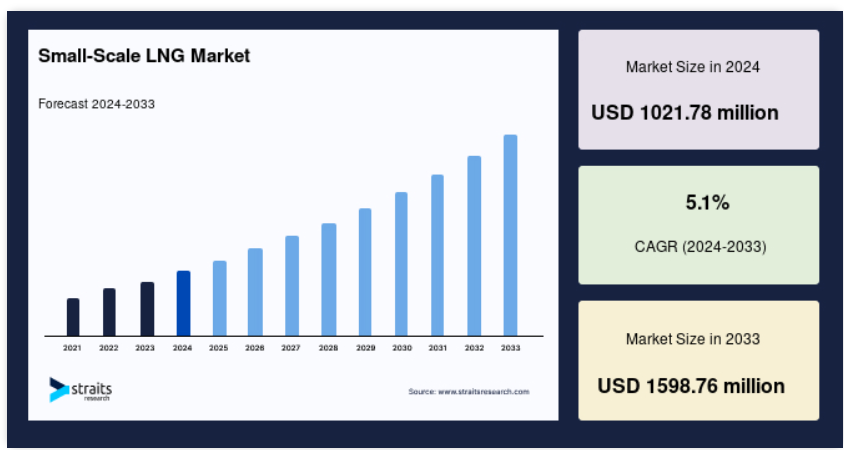 したがって、船舶燃料としてのLNGの拡大は、LNGバンカーインフラやサプライチェーンソリューションの観点から、特に小規模LNG部門に大きな展望をもたらします。LNG燃料船の需要の高まりに応えるため、信頼性が高くコスト効率の良いLNGを供給するには、LNGバンカーターミナル、小規模液化プラント、LNGバンカー船などの小規模LNGインフラが不可欠です。